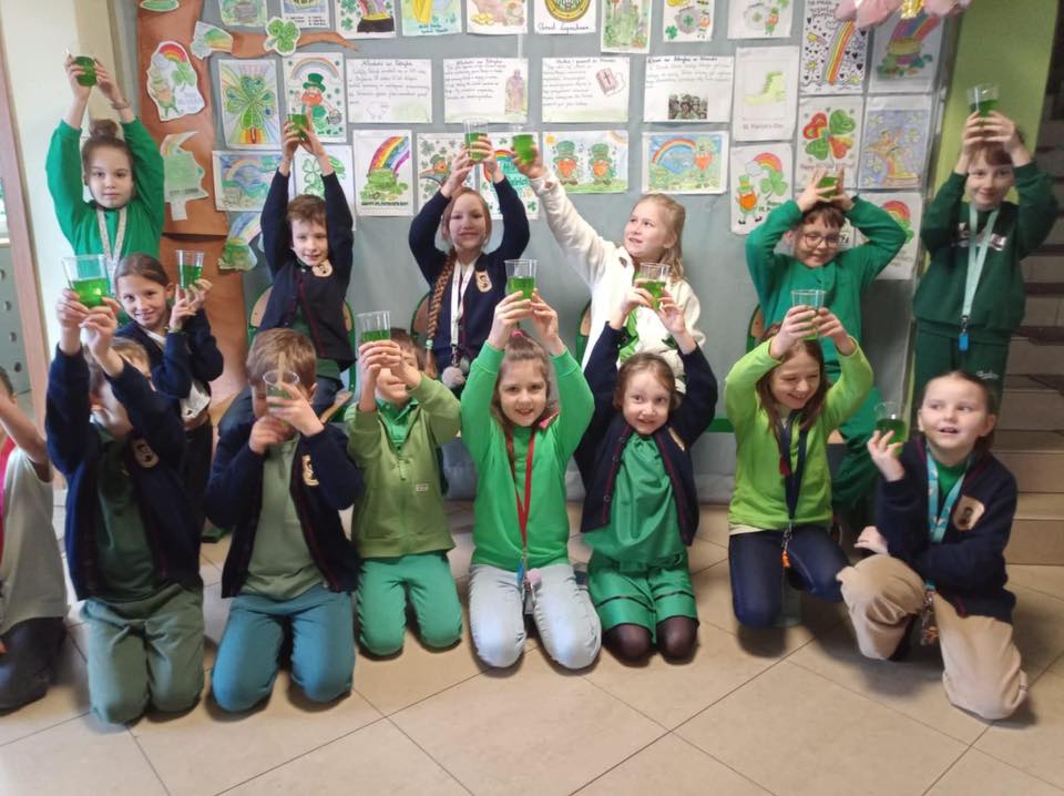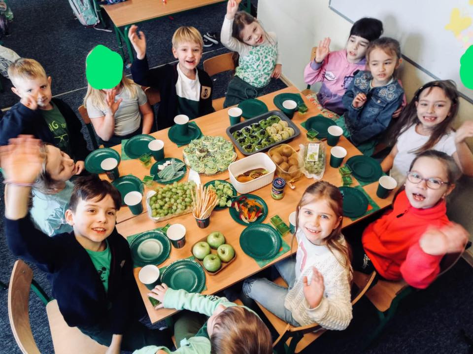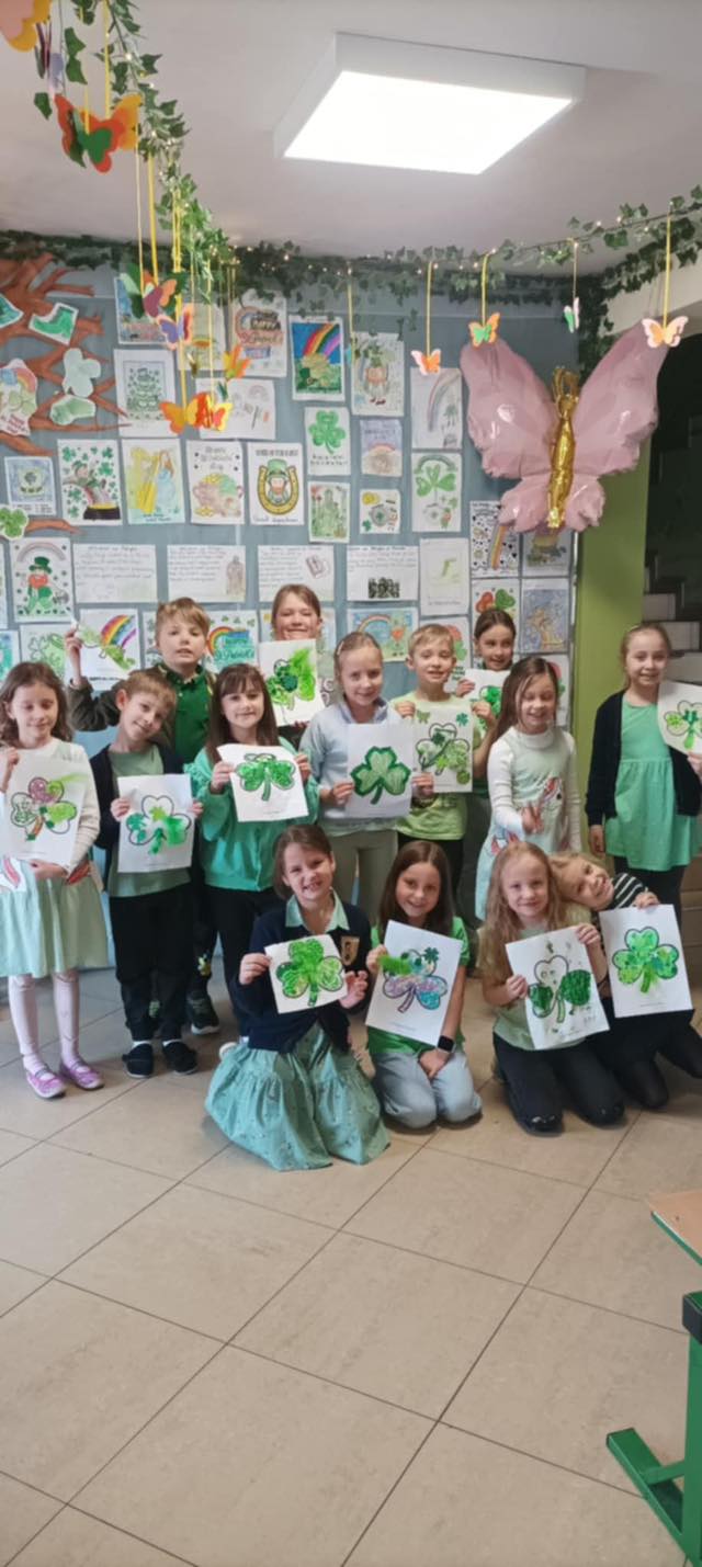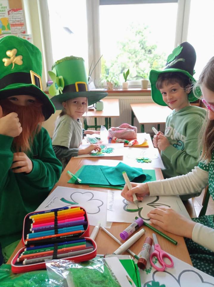 W poniedziałek świętowaliśmy w klasach 1-3 Dzień Świętego Patryka. Rzadko kiedy rodzice i nauczyciele pozwalają na słodkie uczty na lekcji, ale dla Świętego Patryka zrobiliśmy tym razem wyjątek