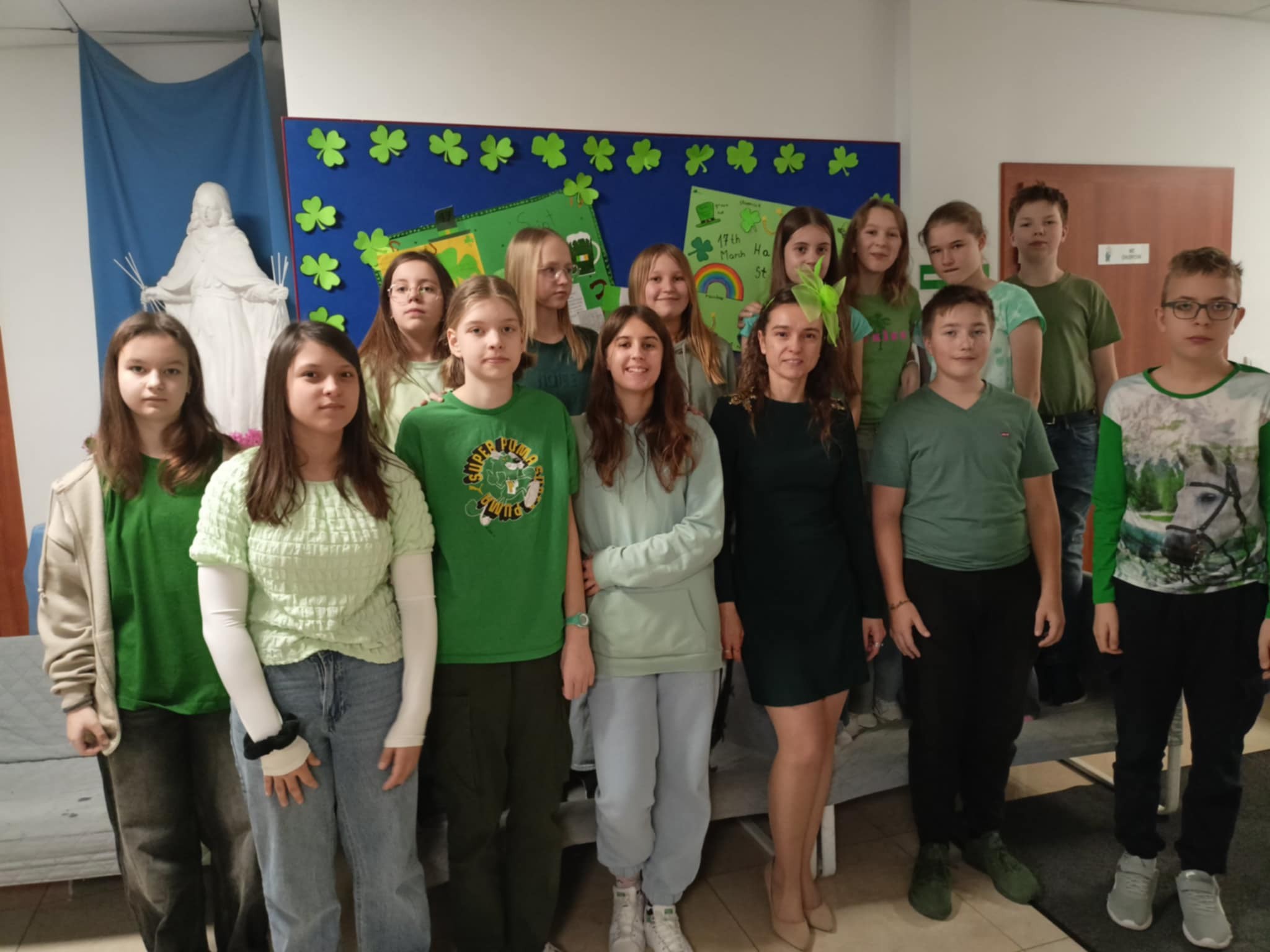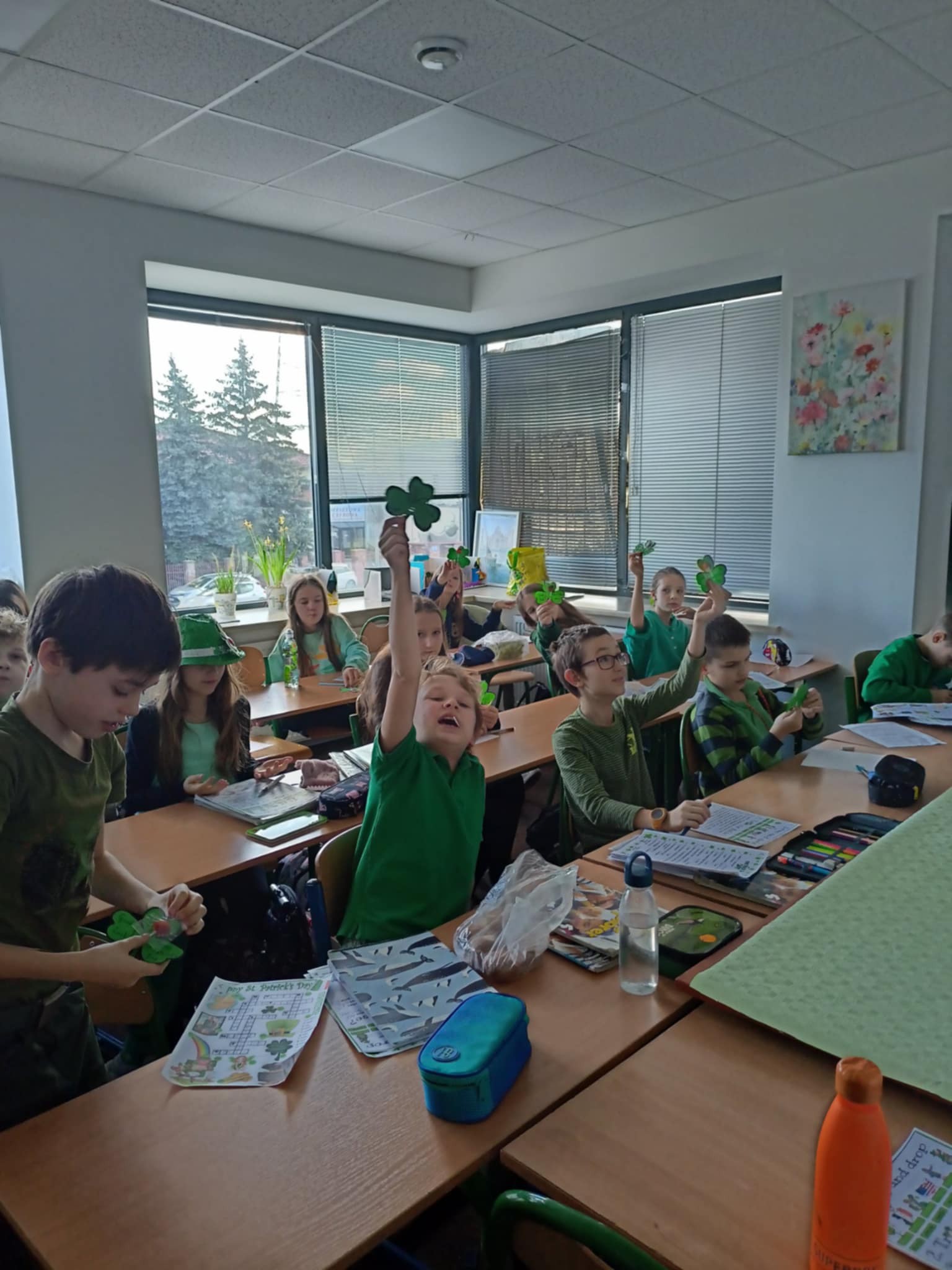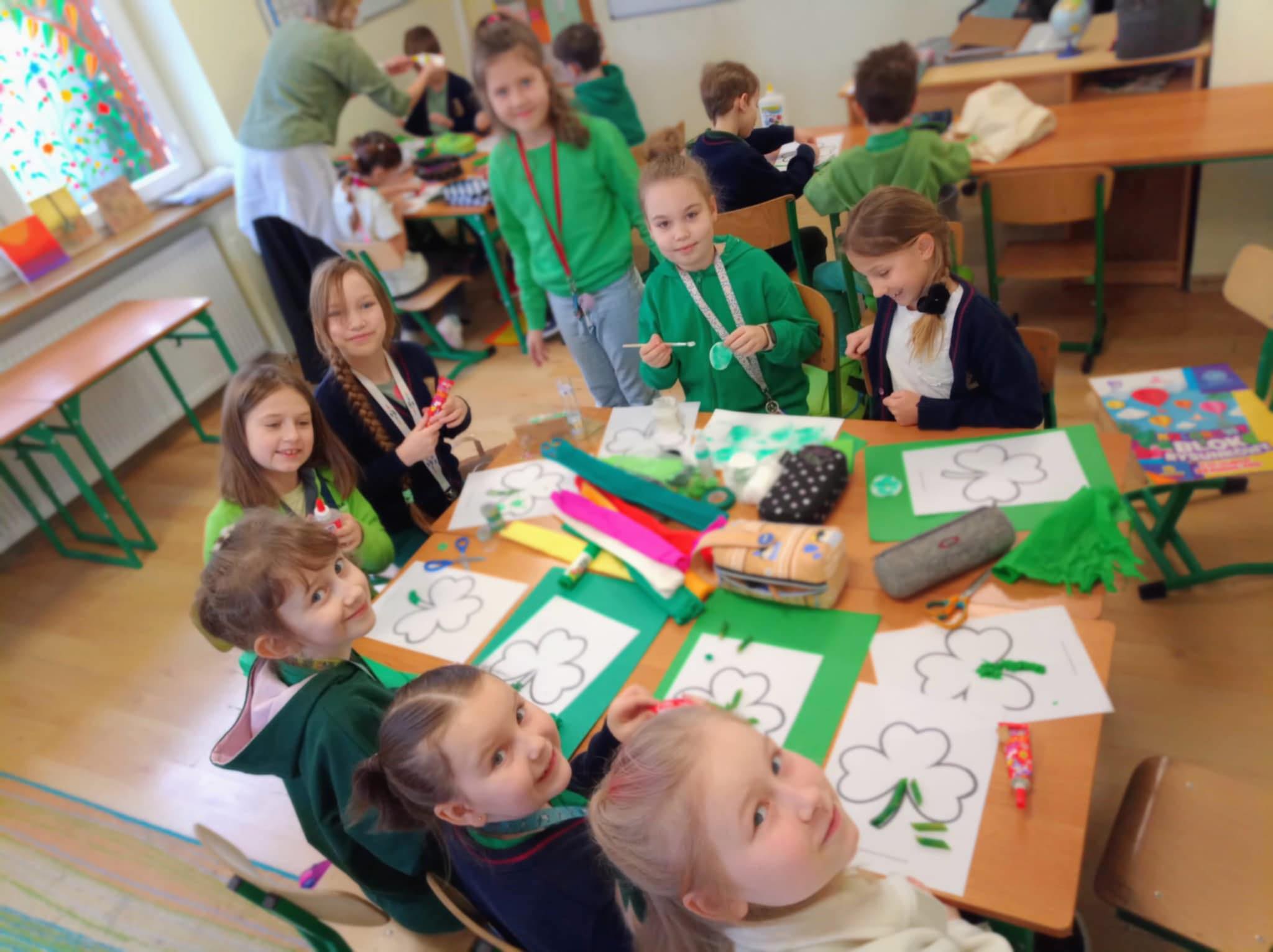 W poniedziałek świętowaliśmy w klasach 1-3 Dzień Świętego Patryka. Rzadko kiedy rodzice i nauczyciele pozwalają na słodkie uczty na lekcji, ale dla Świętego Patryka zrobiliśmy tym razem wyjątek
