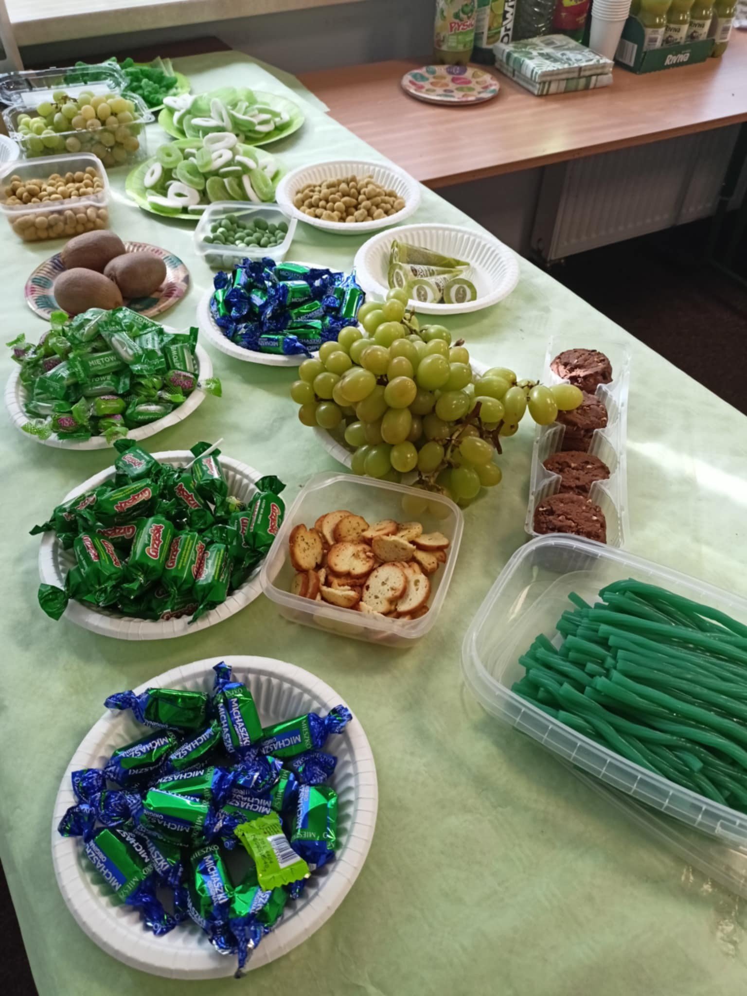 Uczniowie wszystkich klas przygotowali przepiękne dekoracje na drzwiach i częstowali się zielonymi słodkościami